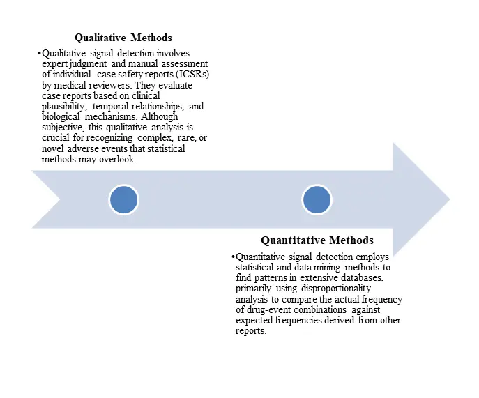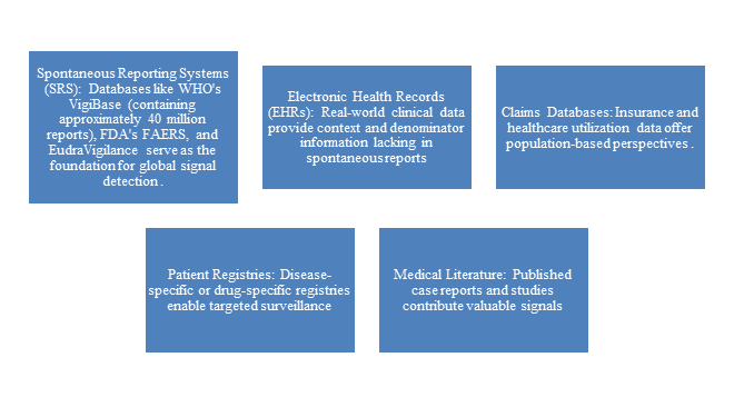 | Signal Detection | Regular screening of adverse event databases, such as VigiBase, FAERS, and EudraVigilance, involves employing data mining techniques and clinical assessments to identify potential safety concerns associated with medical products. | Identify potential medicine–event combinations requiring investigation |